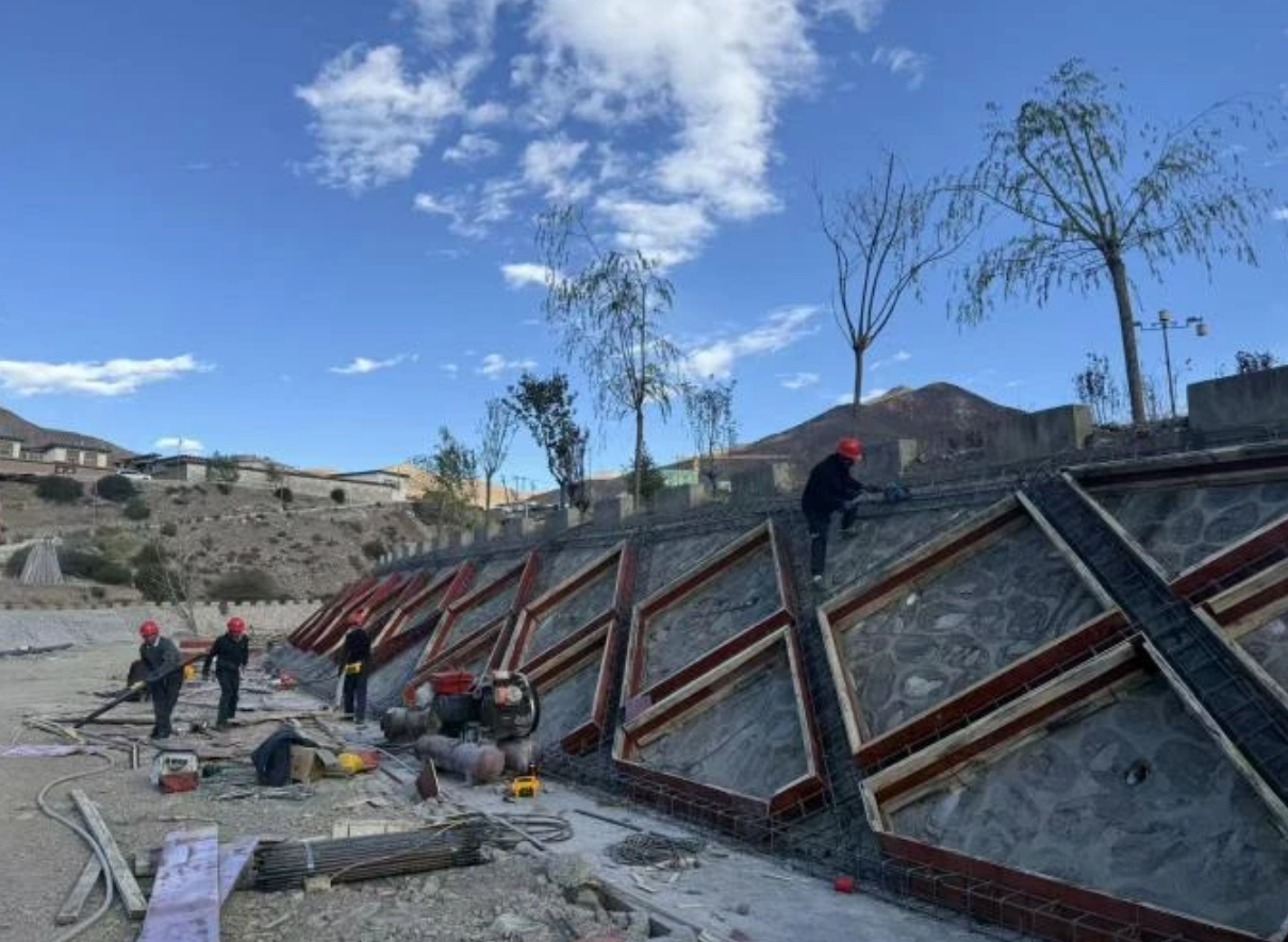 在项目建设中,生态优先理念贯穿全程。工程广泛采用格宾石笼护脚结构,这种结构不仅稳固,而且选用当地石材,大大减少了对生态环境的扰动。同时,通过地形整理、柔性护岸等措施,恢复了河道自然曲线与水陆生态交互功能,让卓玛朗错曲重新焕发出自然的生机与活力。
