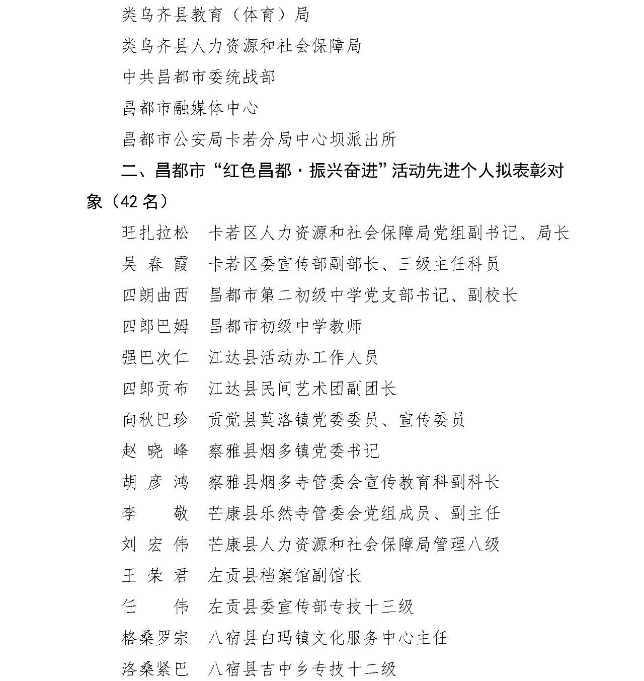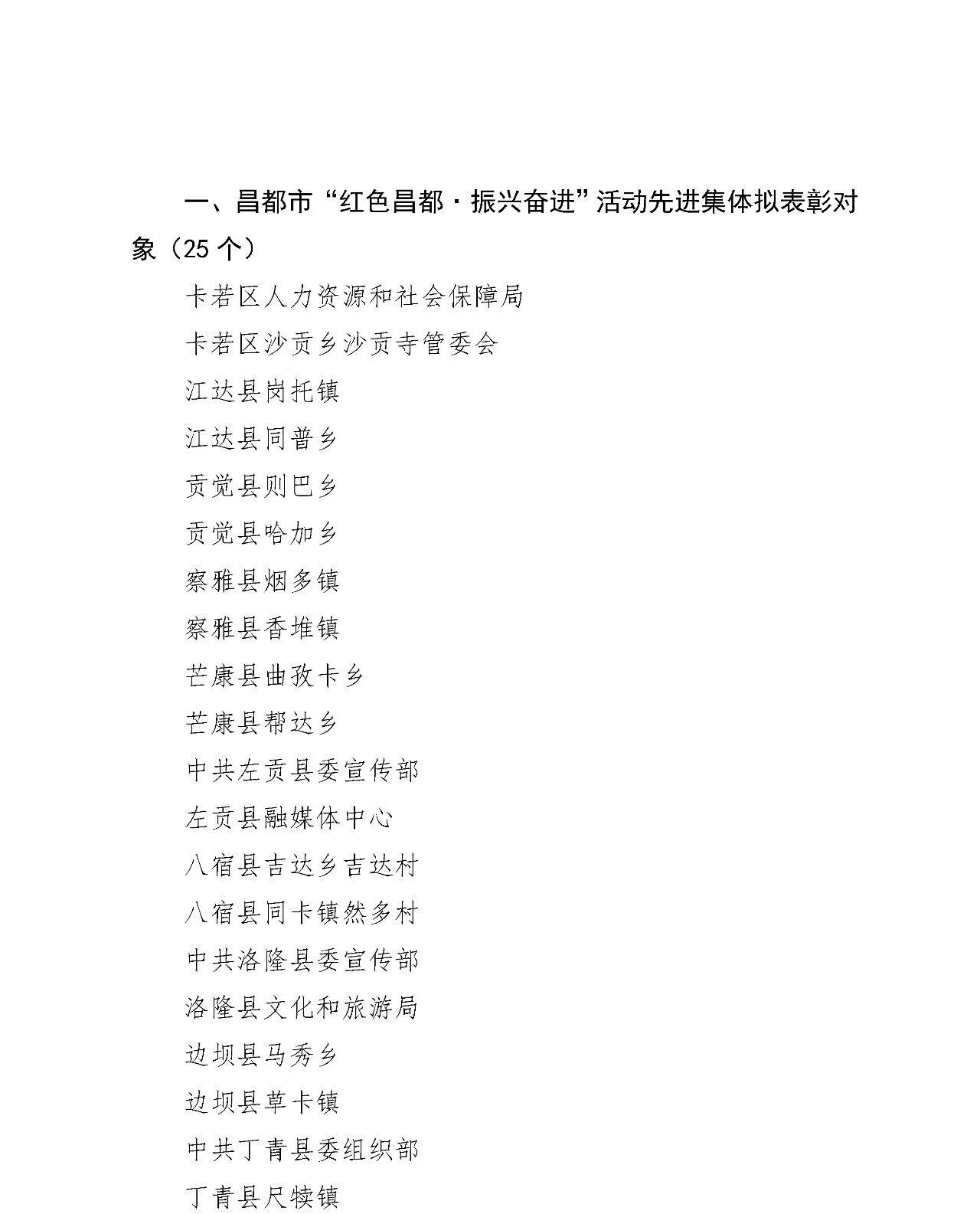 关于昌都市“红色昌都·振兴奋进”活动先进集体和先进个人拟表彰对象的公示
