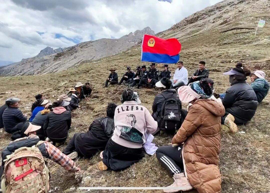 虫草采挖期间昌都市公安干警开展宣讲现场。
