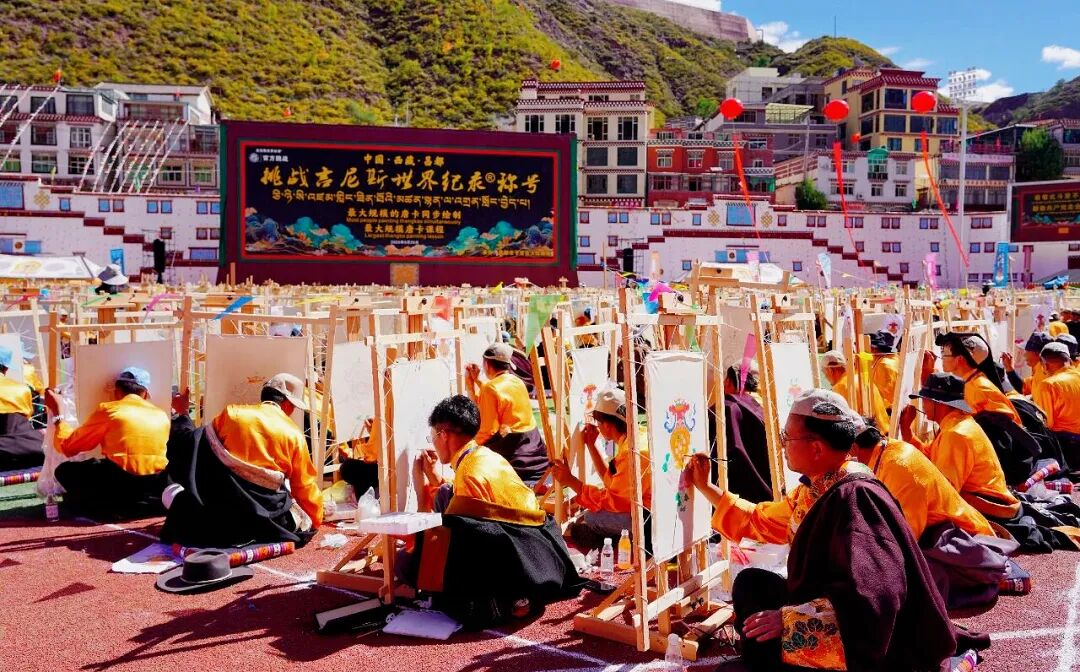 “最大规模的唐卡同步绘制”吉尼斯世界纪录挑战现场。
