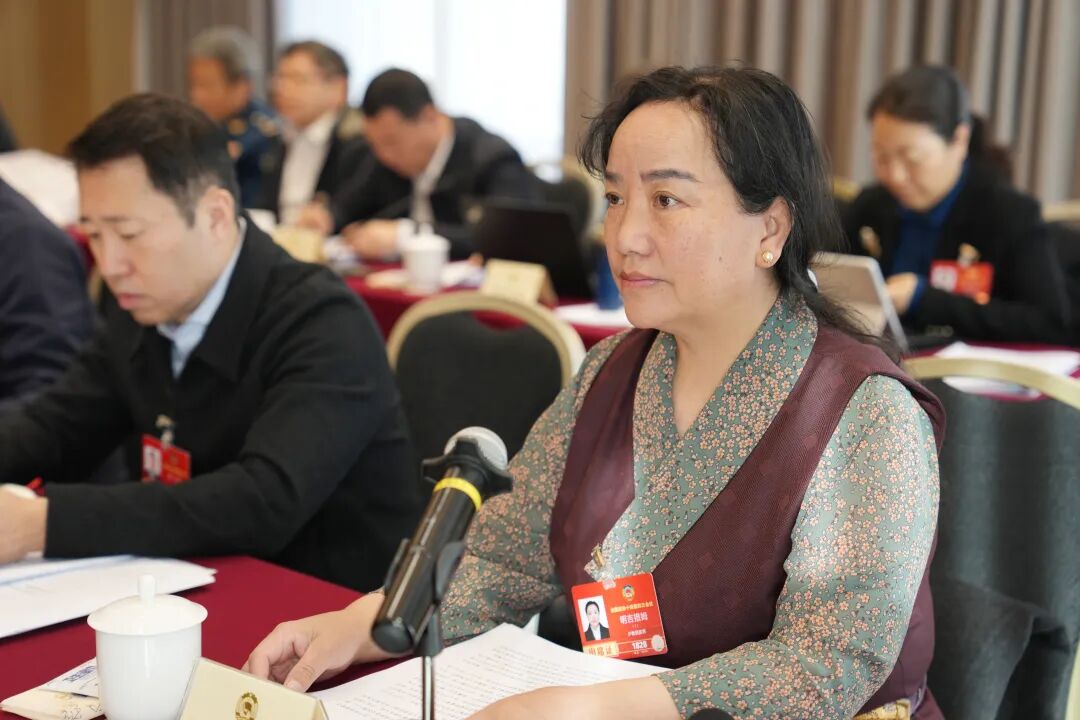 图为明吉措姆在政协医药卫生界别小组会议上发言。记者 陶玥 摄