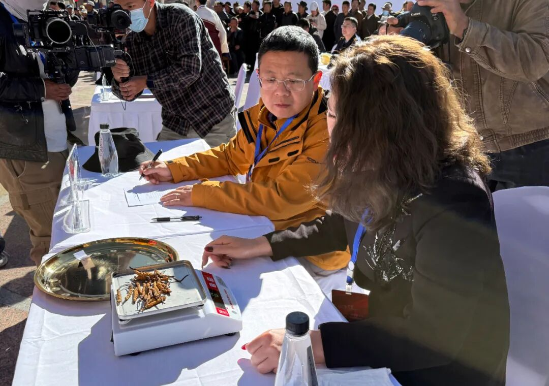 随后的竞拍环节将现场气氛推向高潮,昌都本土网红白玛旺青以五万元高价成功竞拍到“虫草之王”,为大赛画上圆满句号。