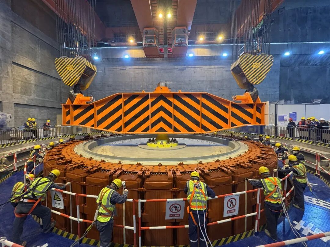 4 月 11 日,地处川藏交界金沙江干流的拉哇水电站,首台(4 号)机转子顺利完成吊装,标志着机组安装进入总装冲刺阶段,为电站按期投产发电筑牢坚实根基。