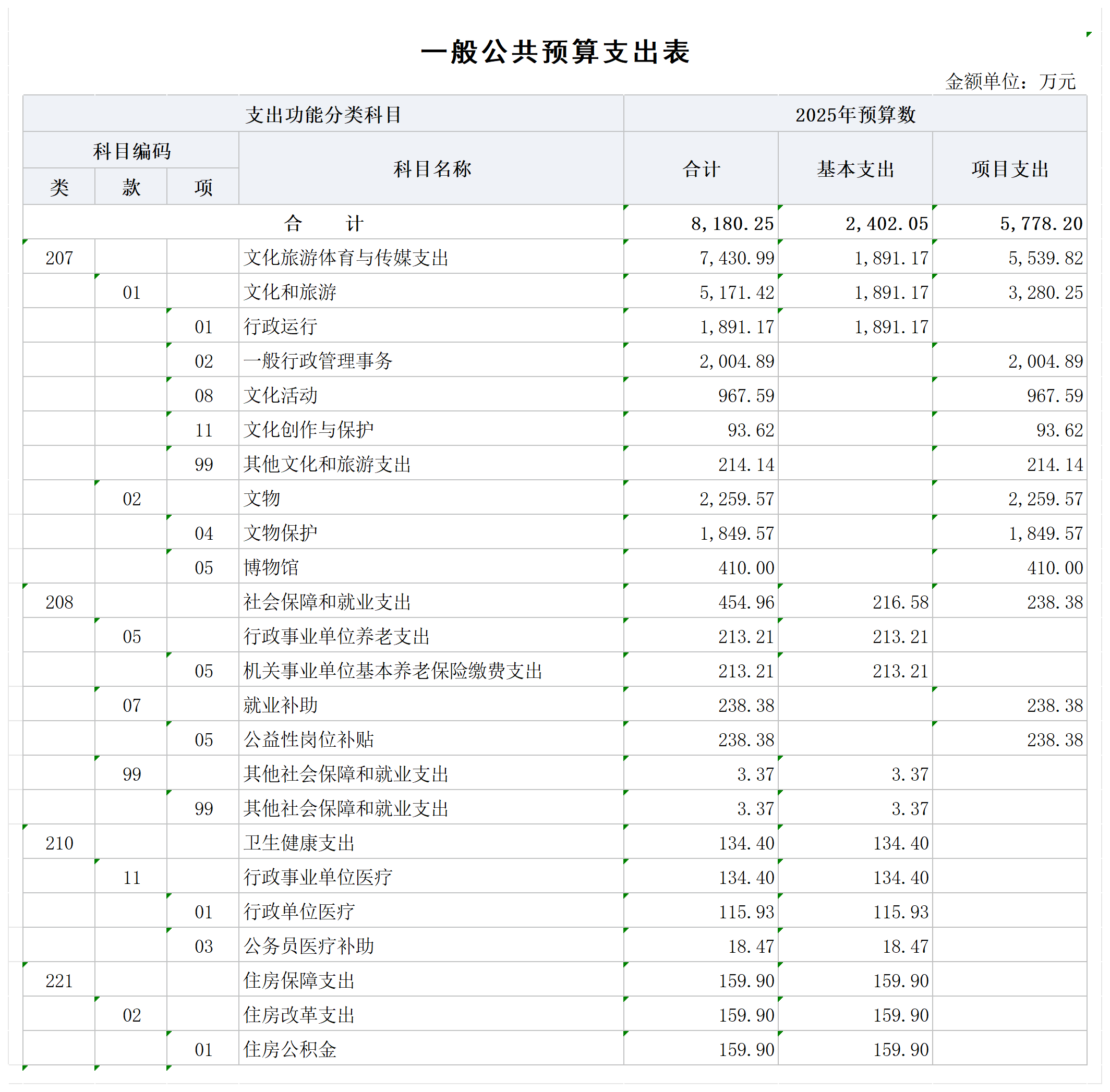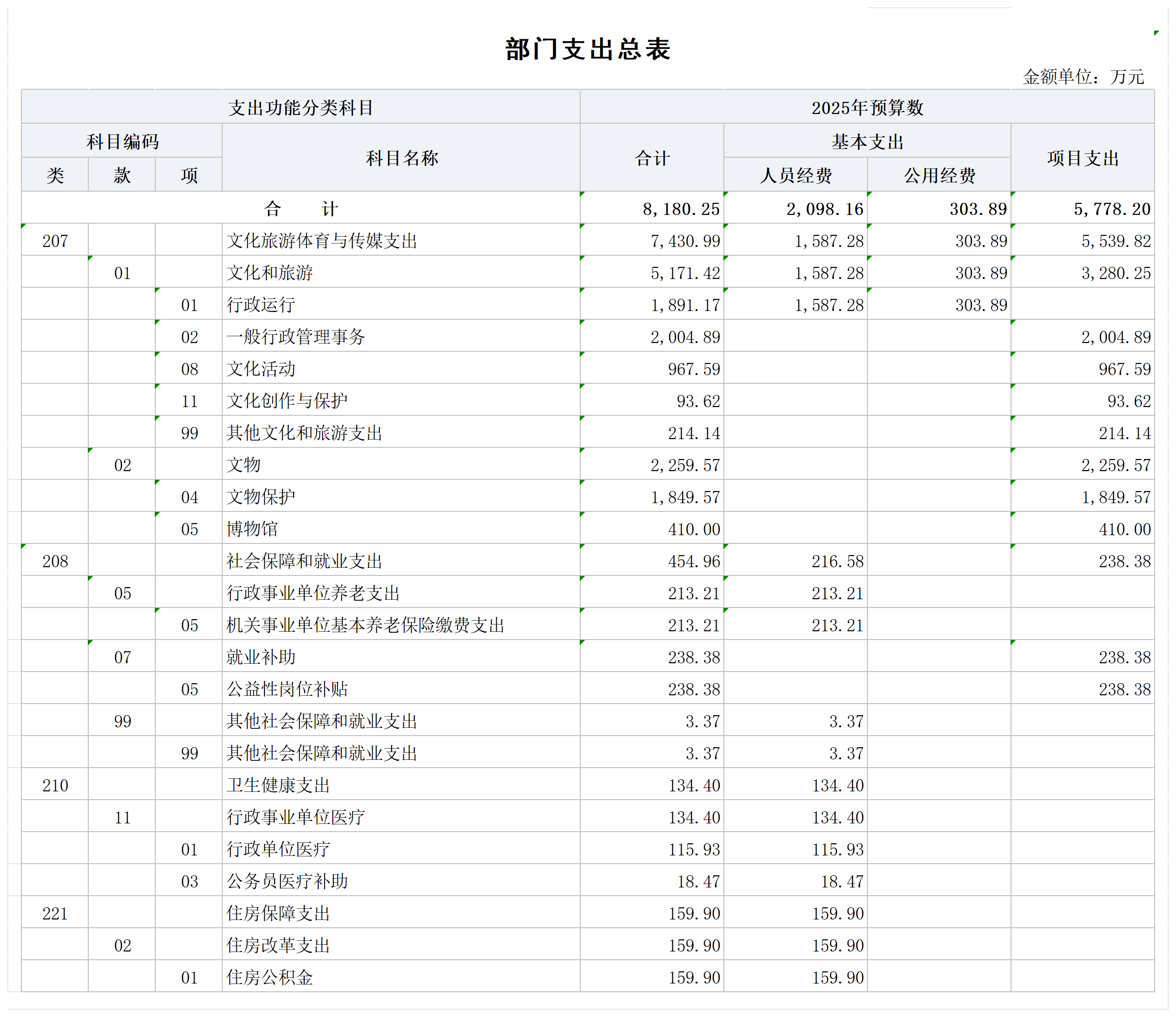 昌都市文化和旅游局(昌都市文物局)机关2025年部门预算公开表